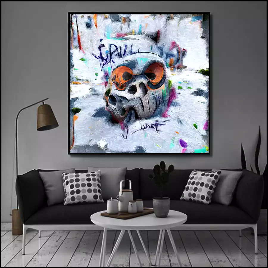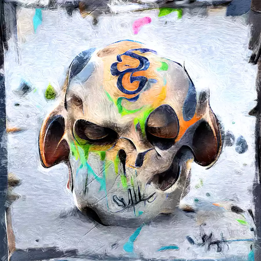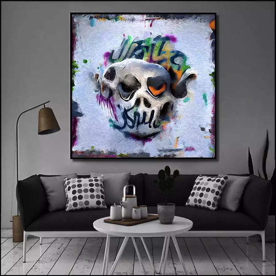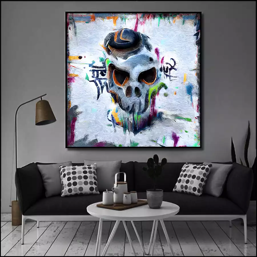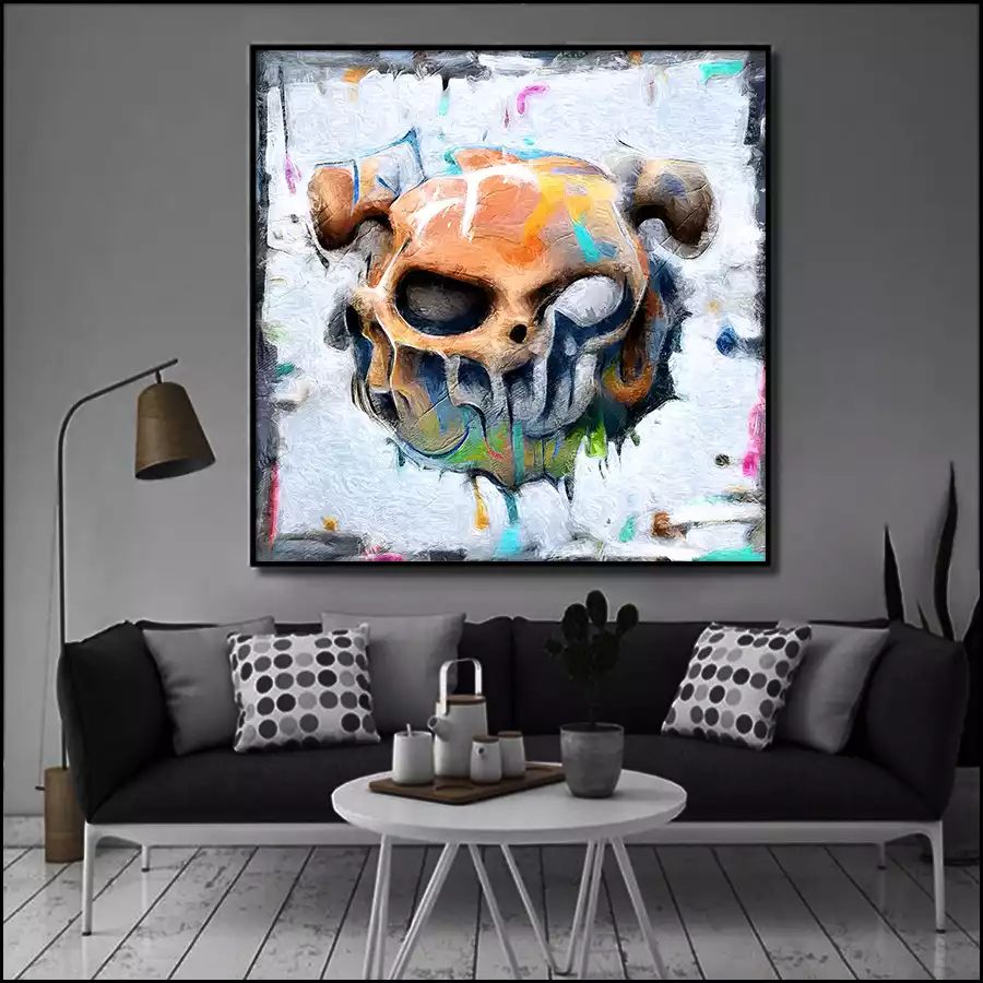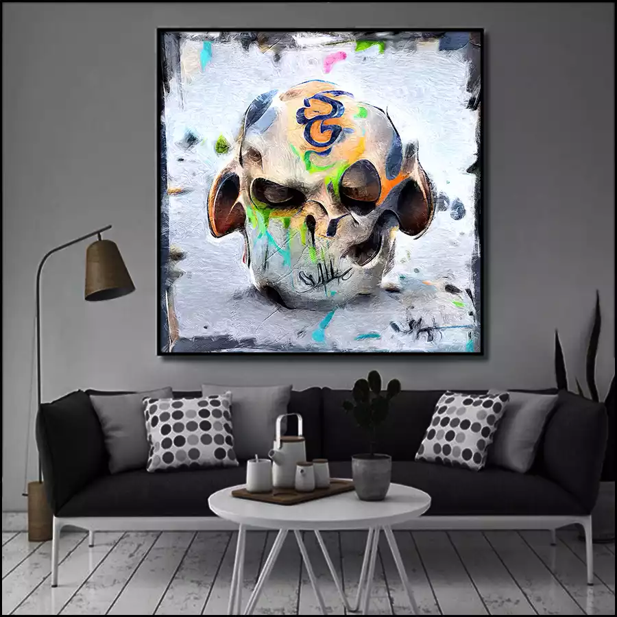 Rå beton, neon farver og nogle syrede kranier, så bliver det ikke federe. Prøver altid at lave, kunst som ikke ligner alt andet, man finder derude og med min “Graffiti Skulls” serie her, får man noget yderst originalt, til sin væg eller sit kontor.