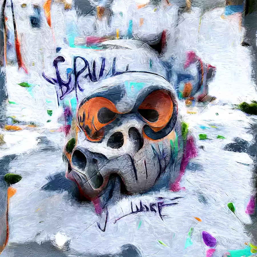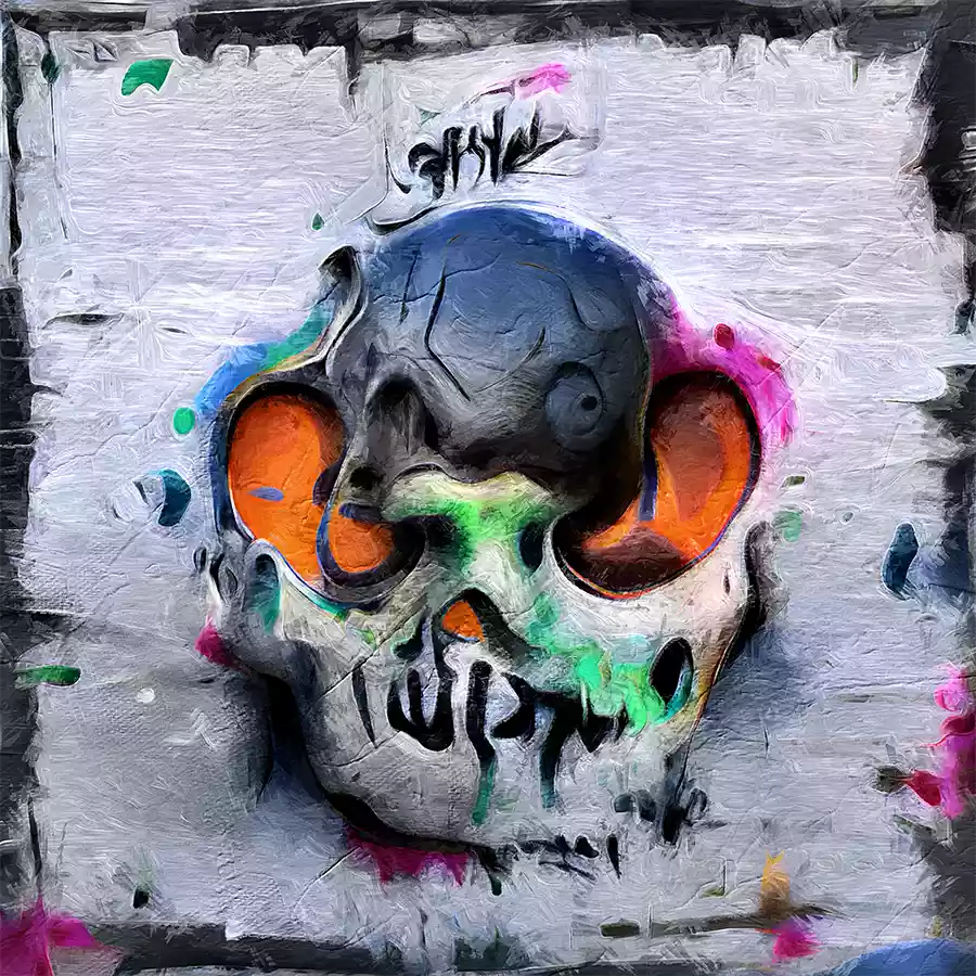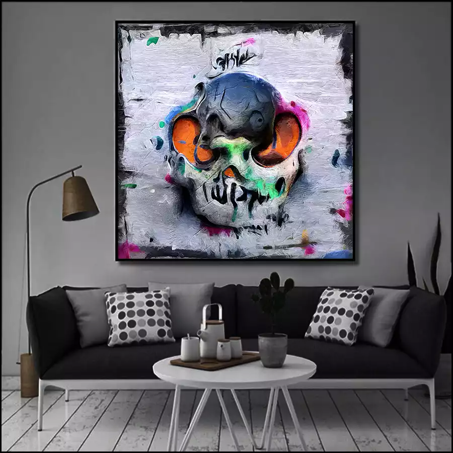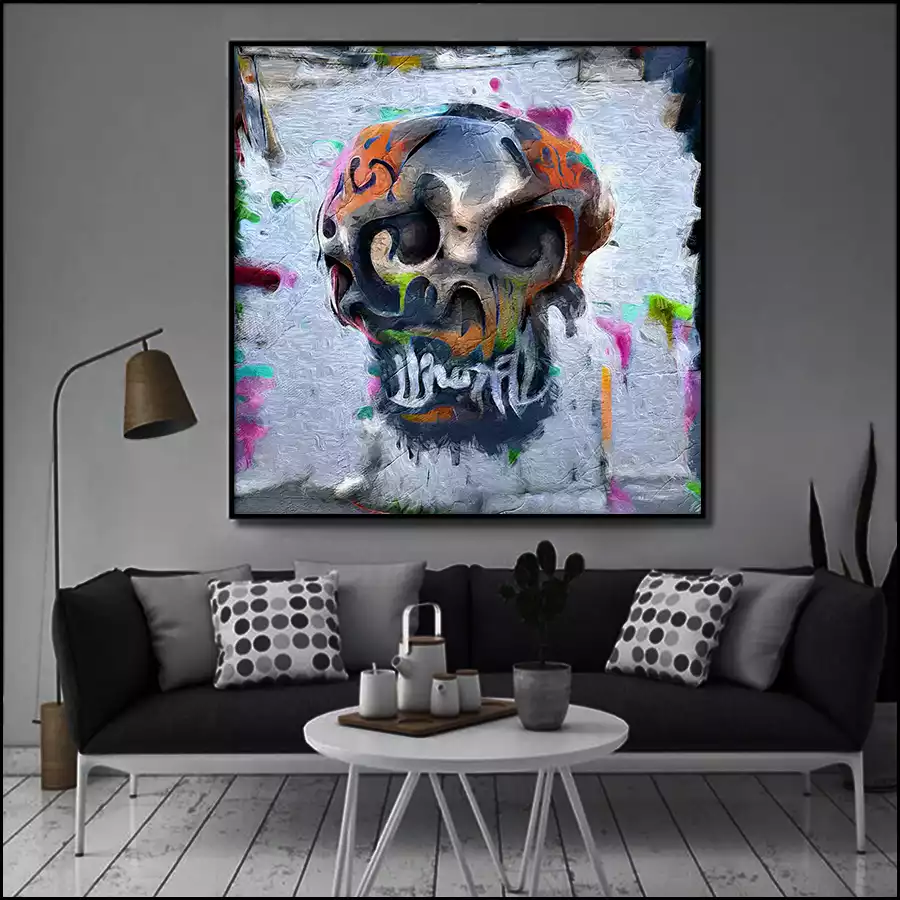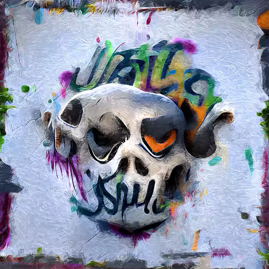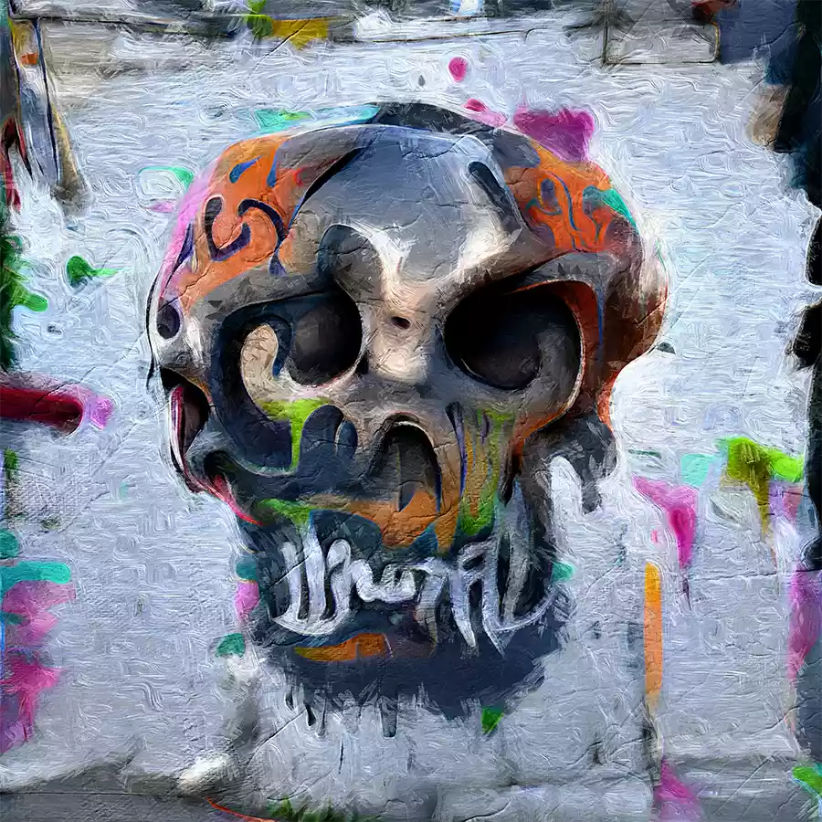 Rå beton, neon farver og nogle syrede kranier, så bliver det ikke federe. Prøver altid at lave, kunst som ikke ligner alt andet, man finder derude og med min “Graffiti Skulls” serie her, får man noget yderst originalt, til sin væg eller sit kontor.